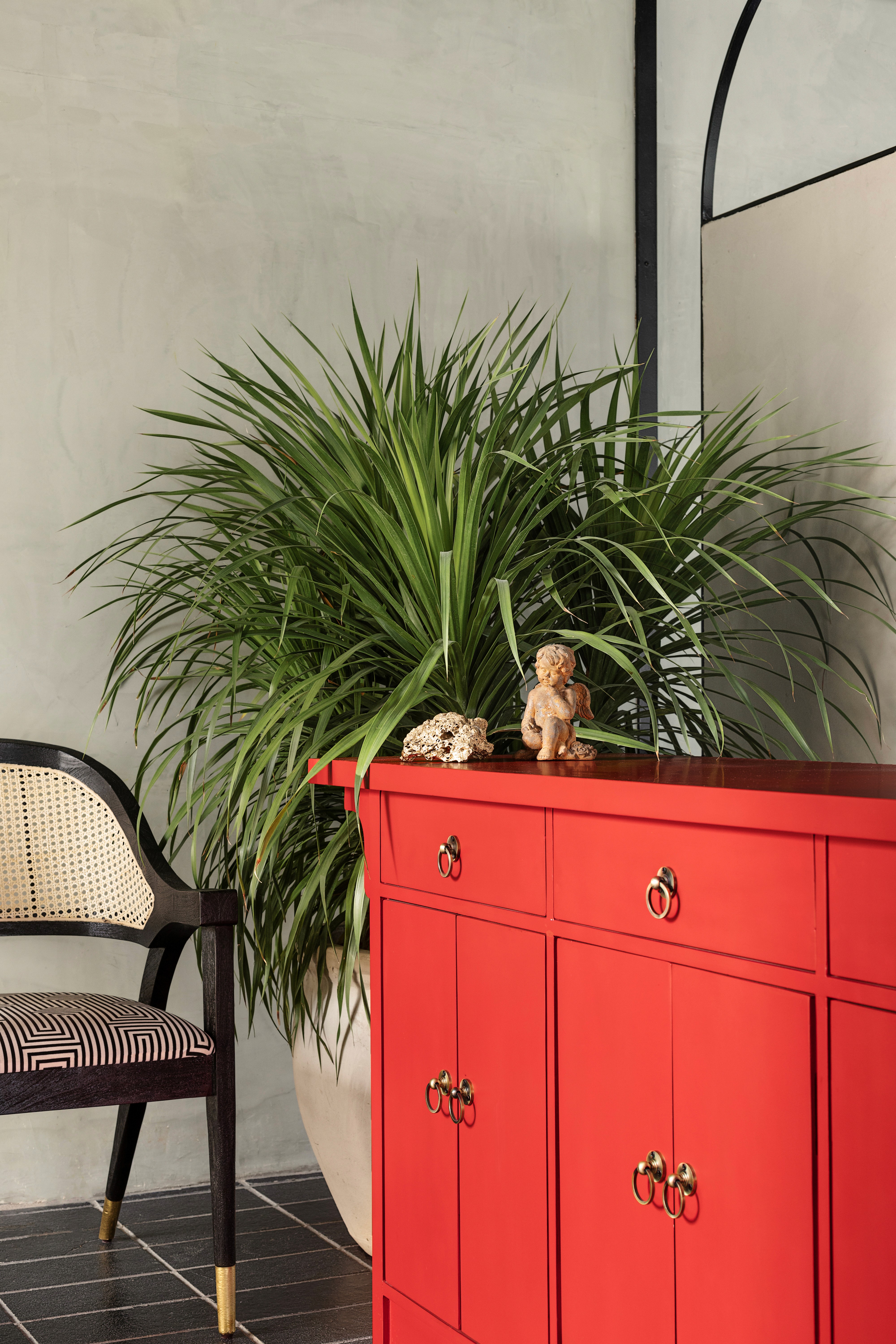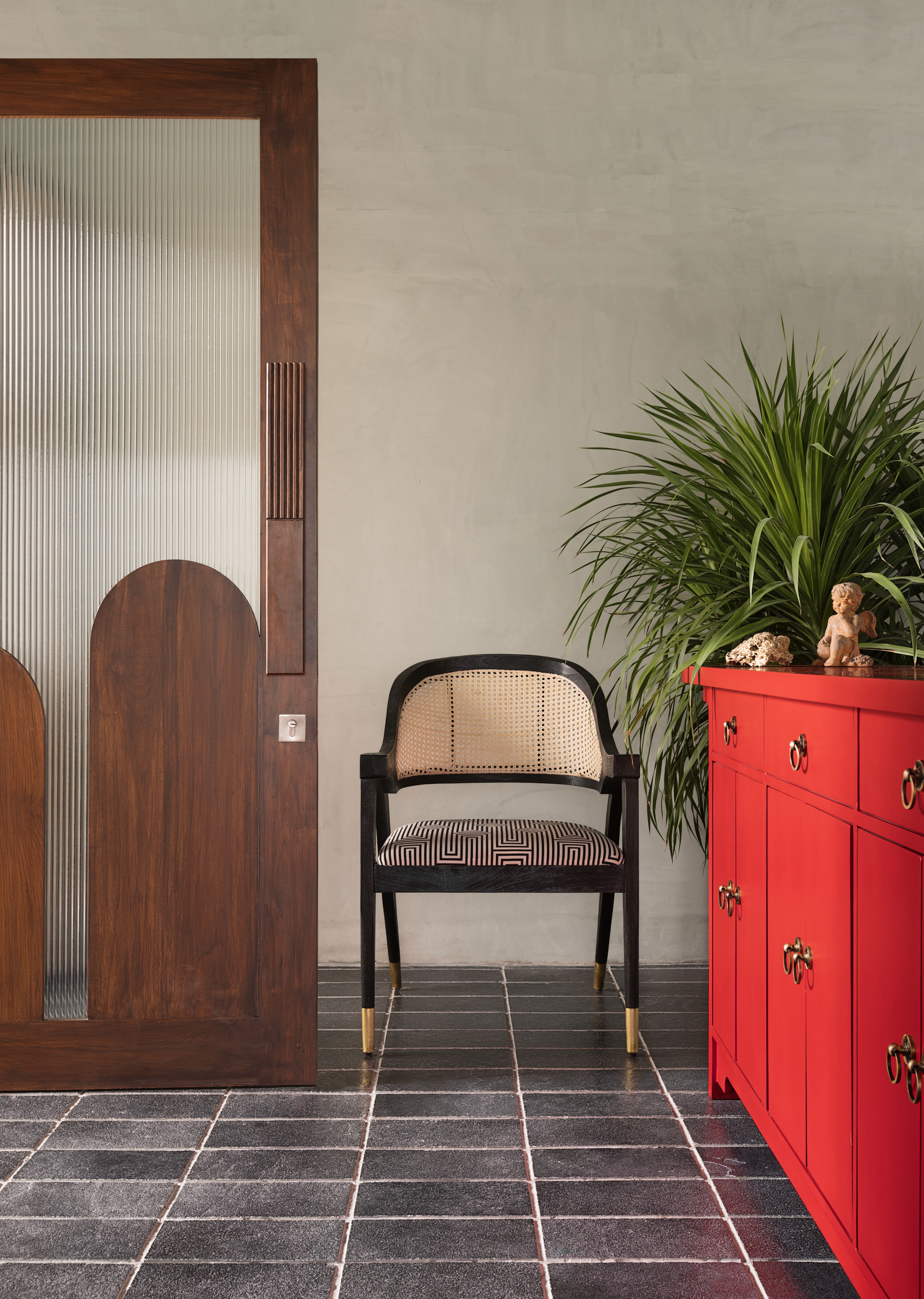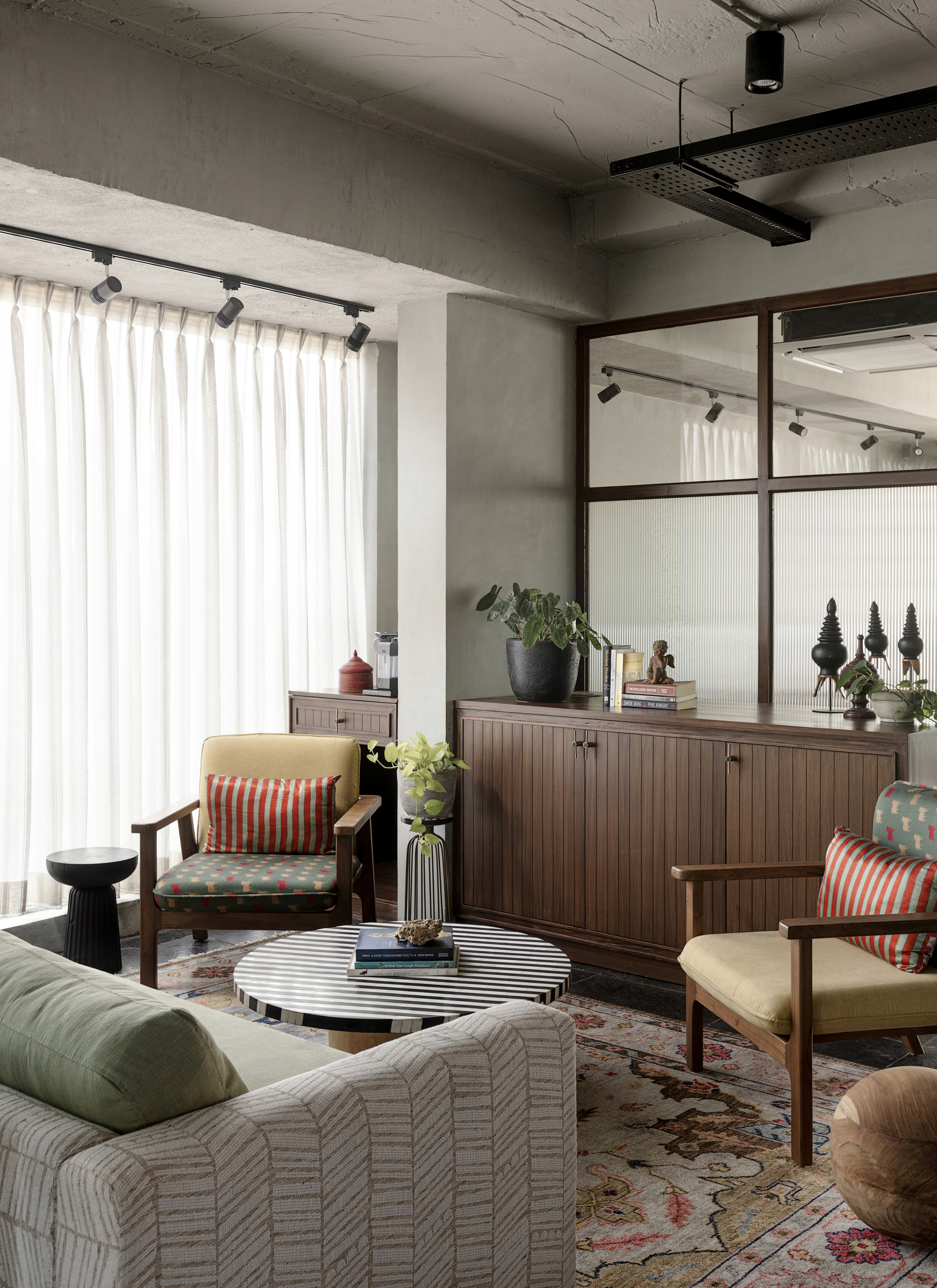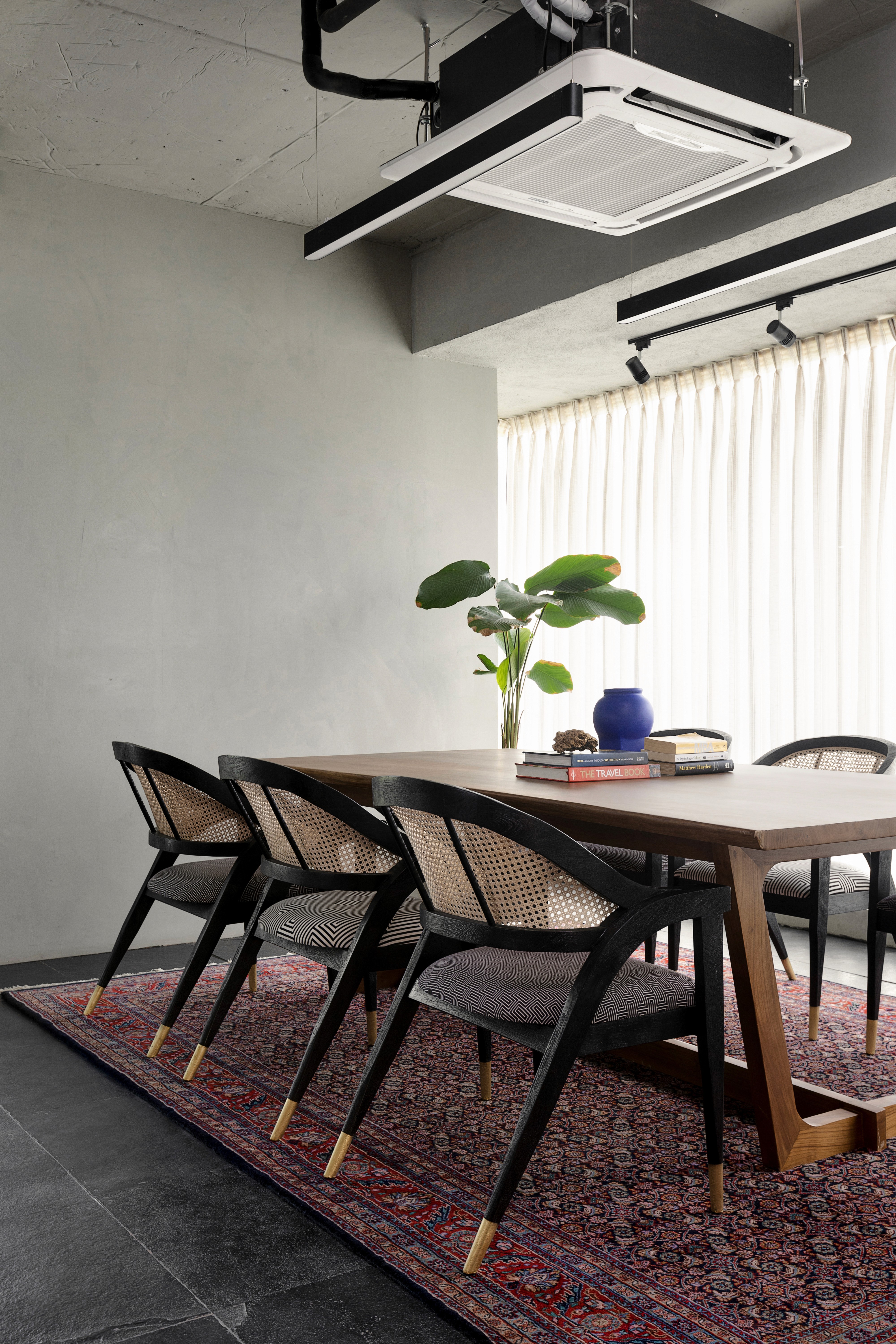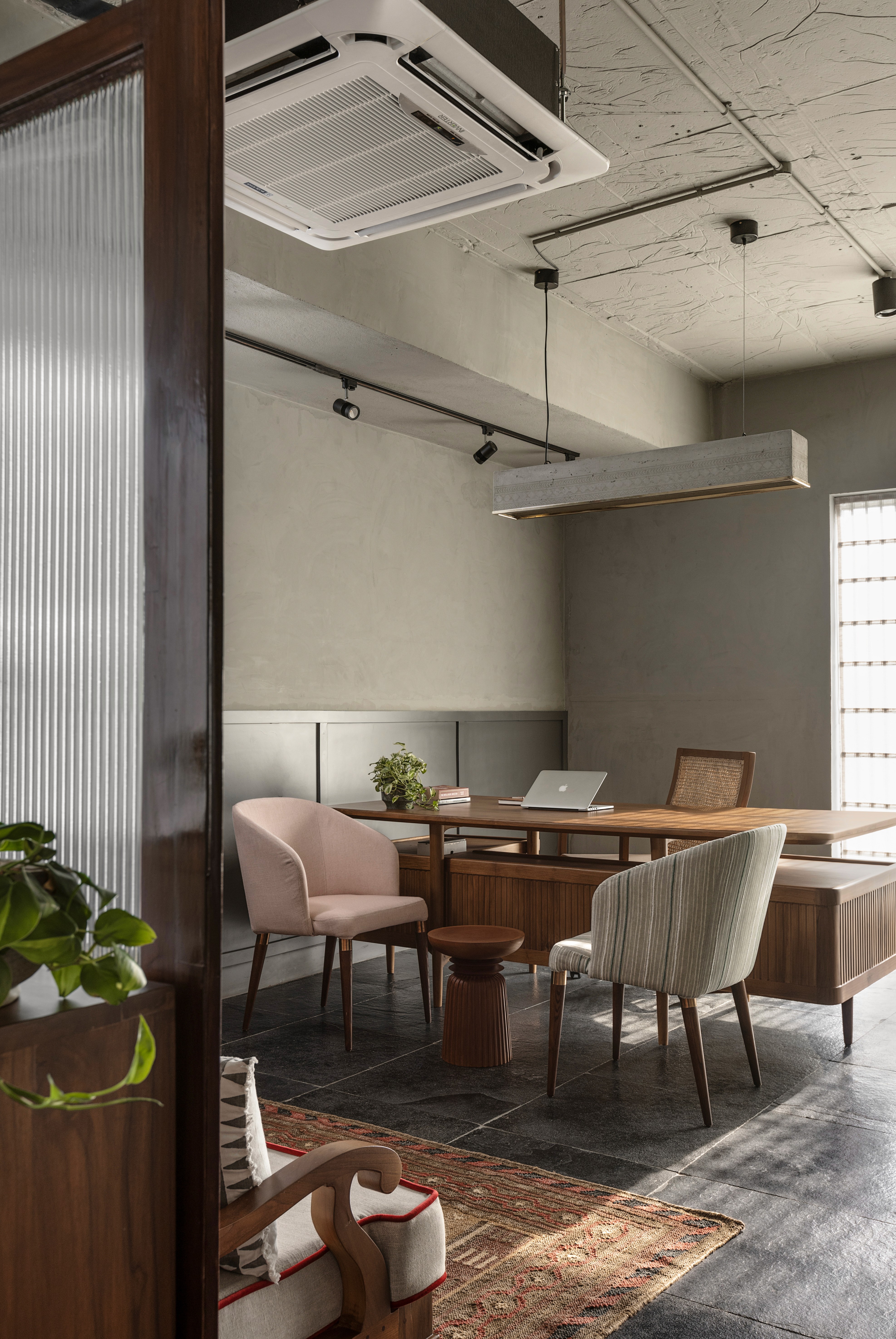 In the Boldcap office, our furniture serves as a grounding element against striking Kotta stone flooring and vibrant interiors. We produced custom work surfaces and communal pieces that stand up to the bold color palette of the space. The rich, natural wood grains provide a warm, tactile contrast to the industrial sharpness of a modern professional environment.